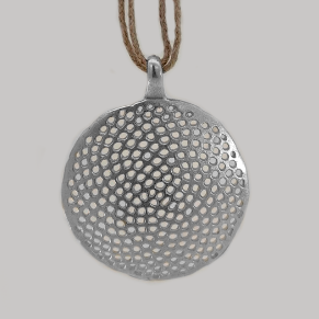Medalla de Plata de llei. Mida: 36 mm de diàmetre. La medalla inclou un cordó de lli de color cru. Producte de producció local elaborat artesanalment. (Els preus dels productes de plata poden variar en funció dels increments del material)